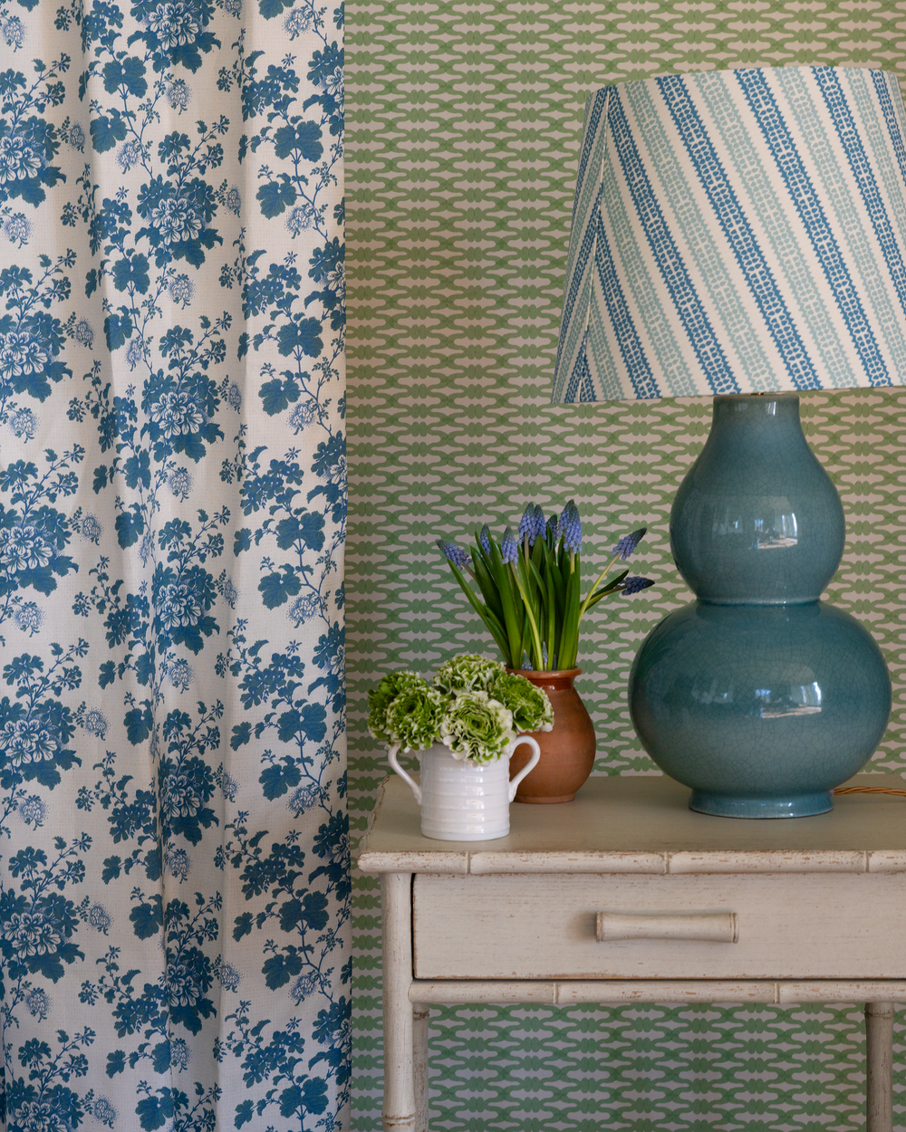 Browse our inspiration pages to see how patterns work in real homes - from period properties to contemporary spaces. I'm always happy to send samples and talk through your ideas, whether you're upholstering a chair or papering a whole room.
